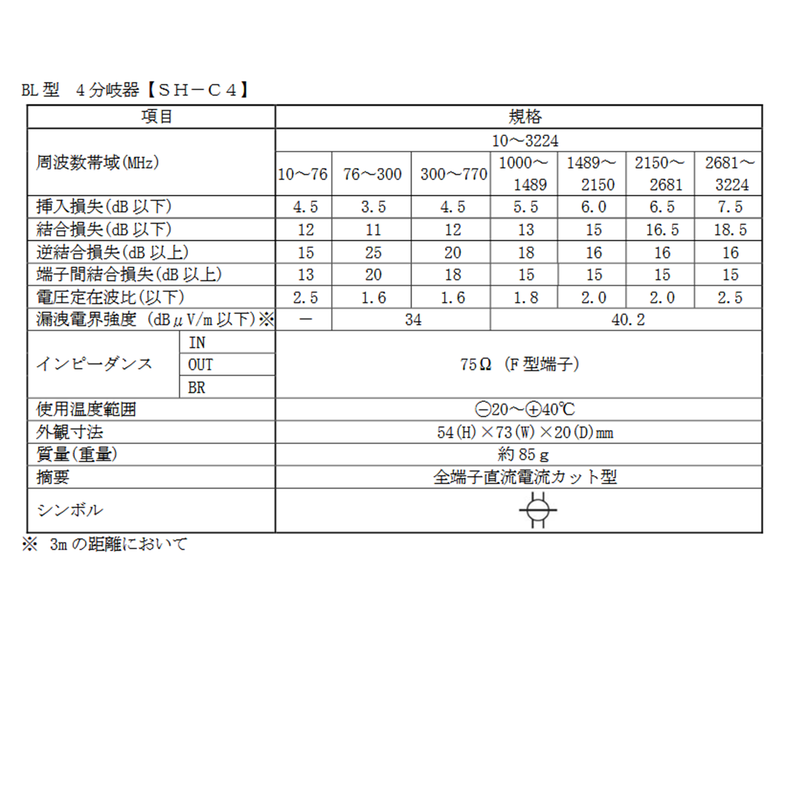 分岐器は、高性能ハイブリッド回路によって、双方向・FM・VU・BS・CS の広帯域にわたり、